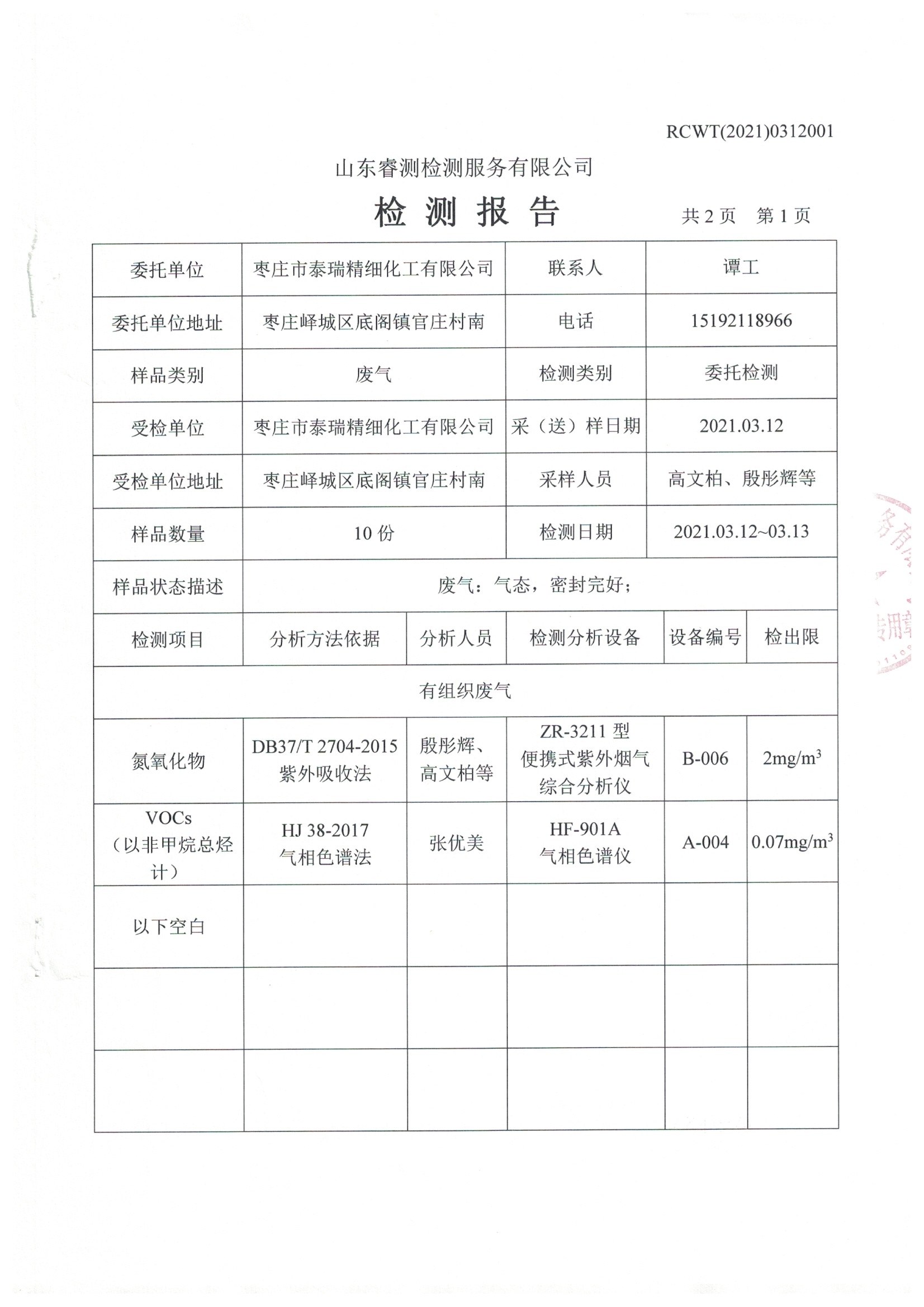 2021年4月份及季度自行檢測(cè)報(bào)告