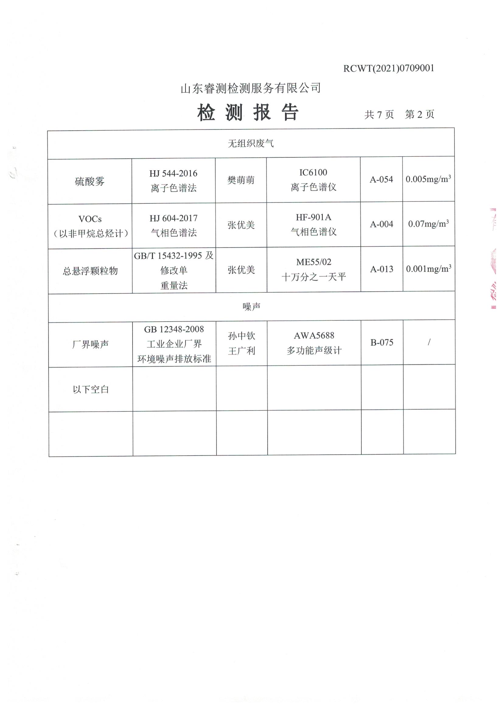 2021年7月份自行檢測報(bào)告