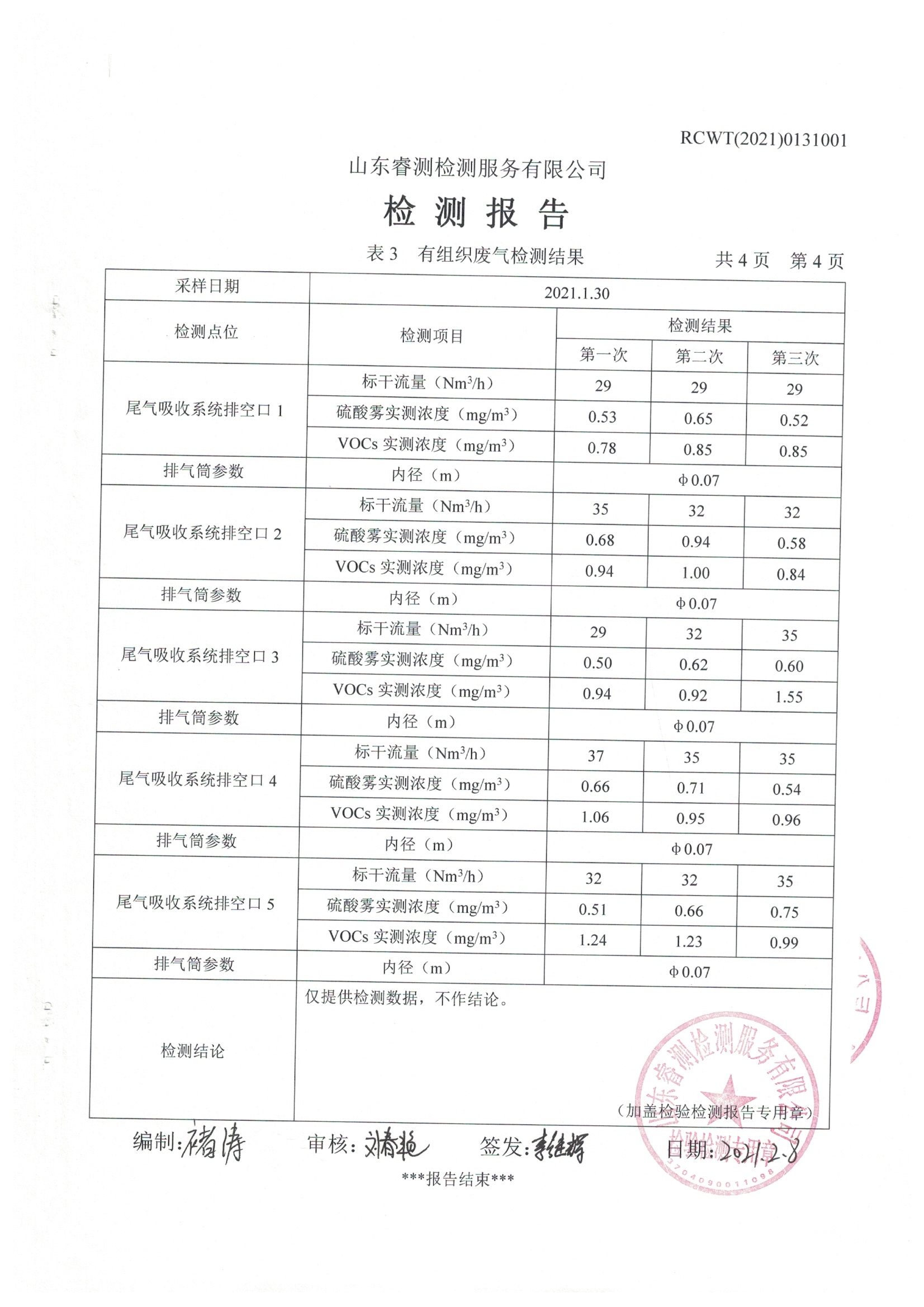 2021年第一季度自行檢測(cè)報(bào)告