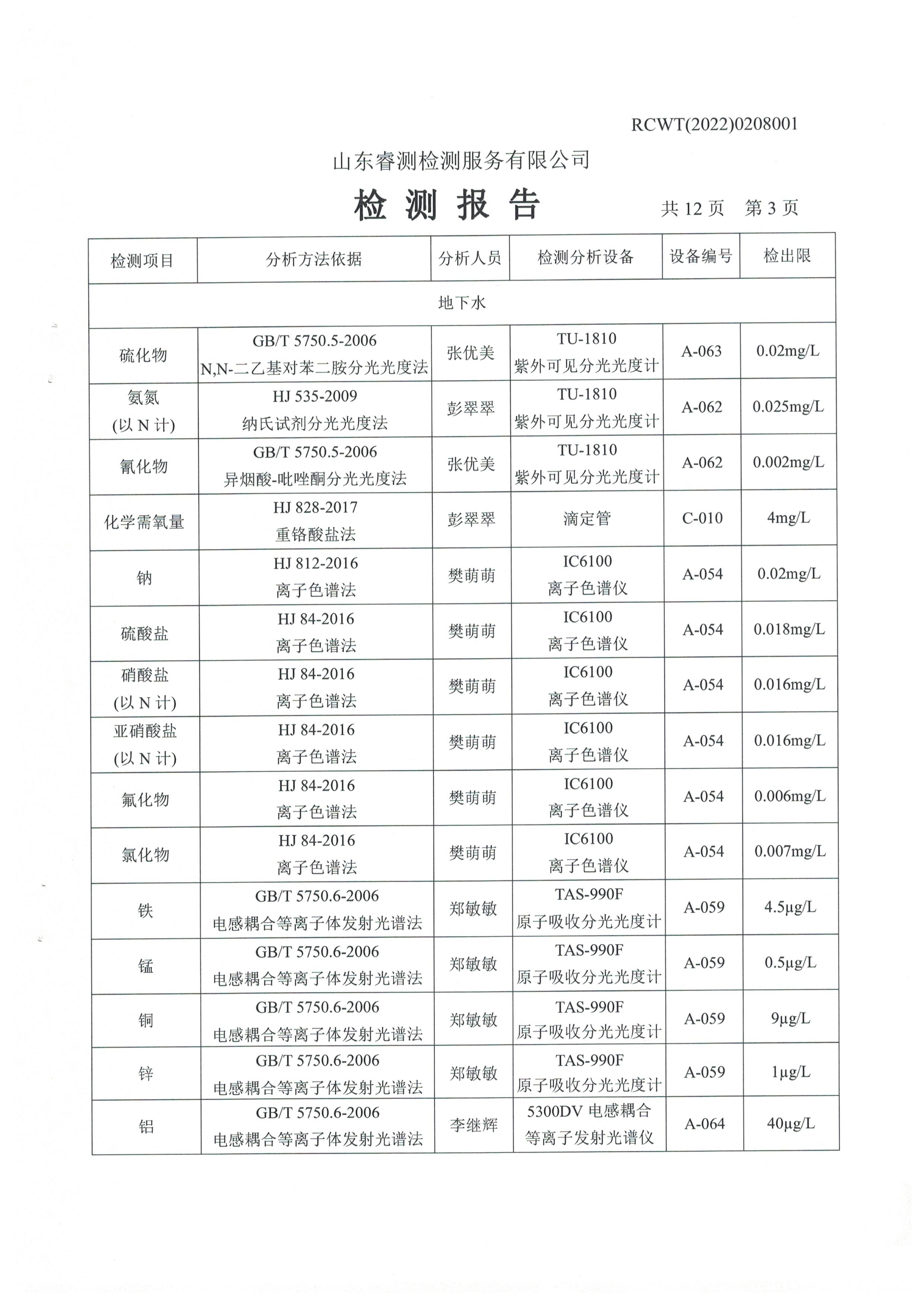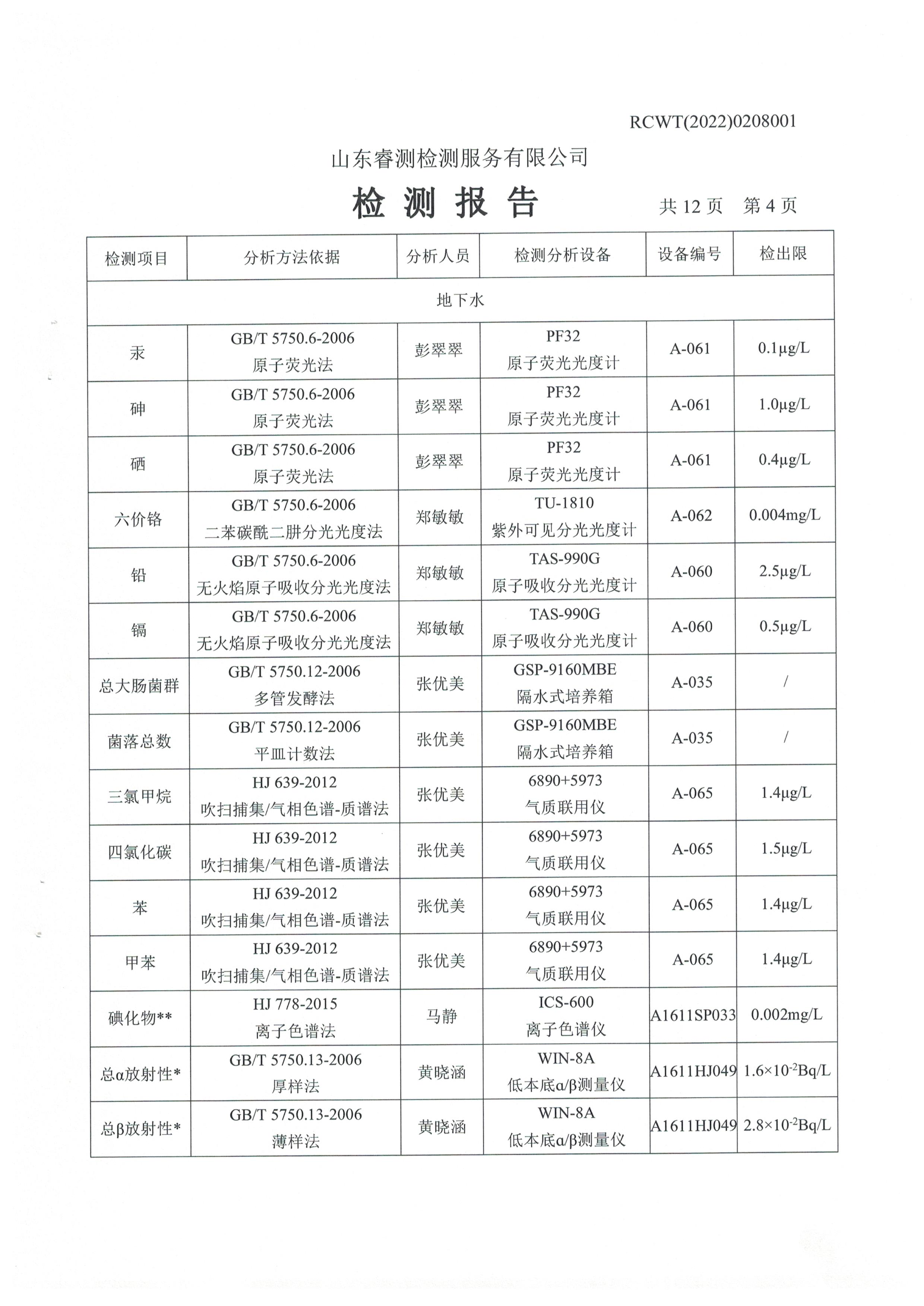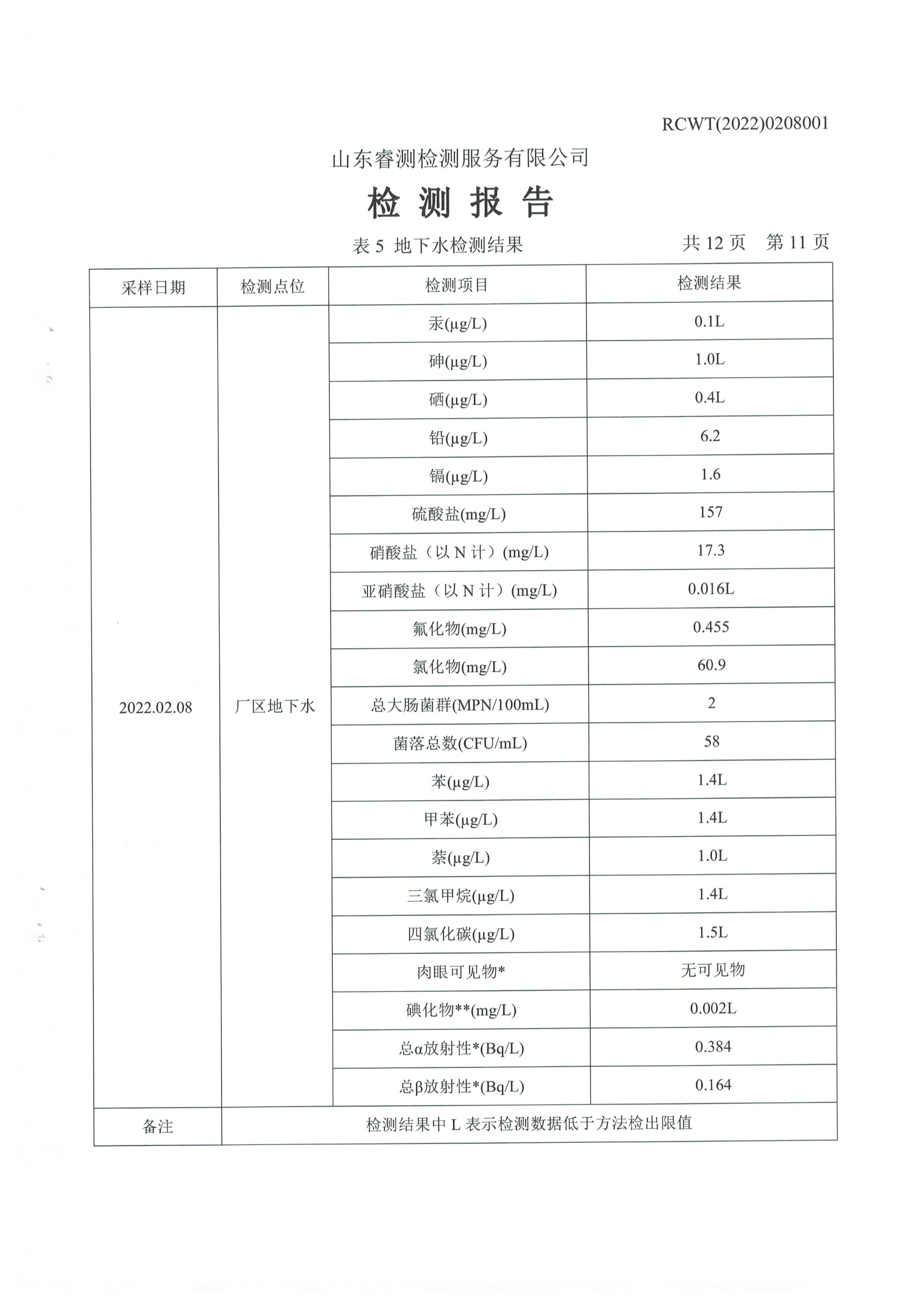 2022年2月份及第一季度自行檢測報告
