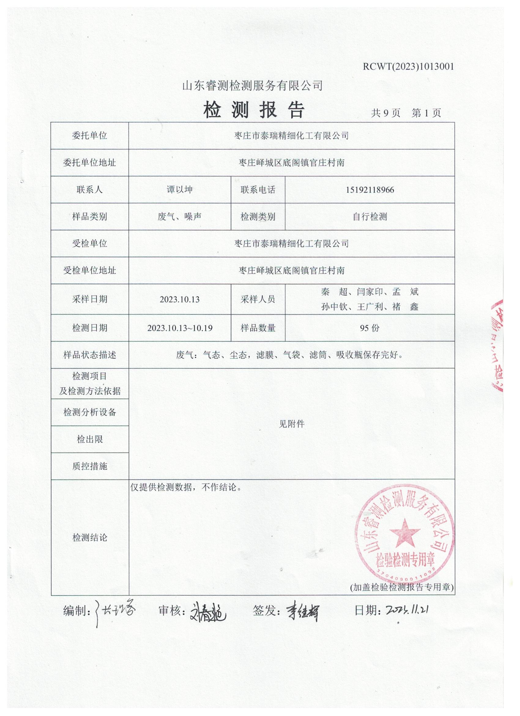 2023年第4季度(11月份)檢測(cè)報(bào)告