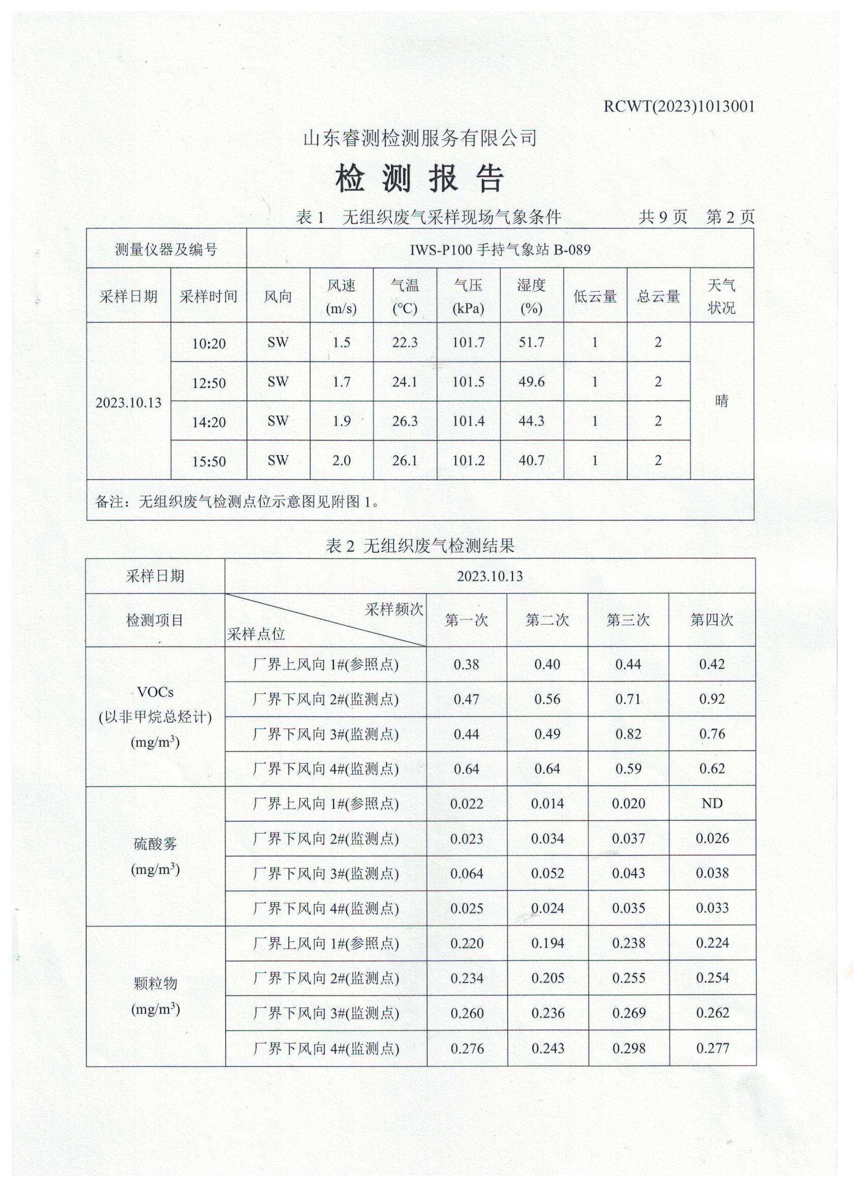 2023年第4季度(10月份)檢測(cè)報(bào)告