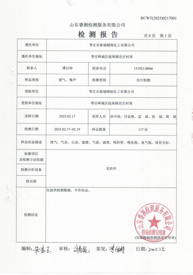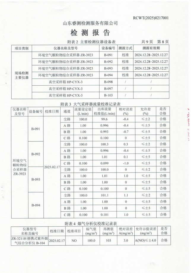 2025年第一季度廢氣、噪聲檢測(cè)報(bào)告