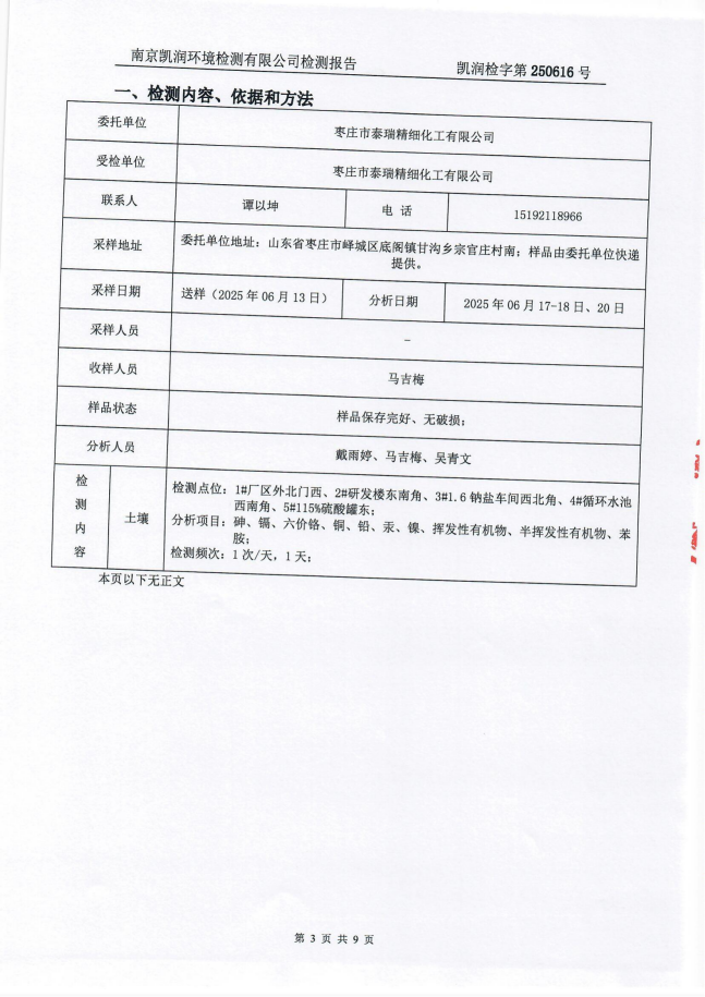 2025年泰瑞精細(xì)化工有限公司土壤檢測(cè)報(bào)告